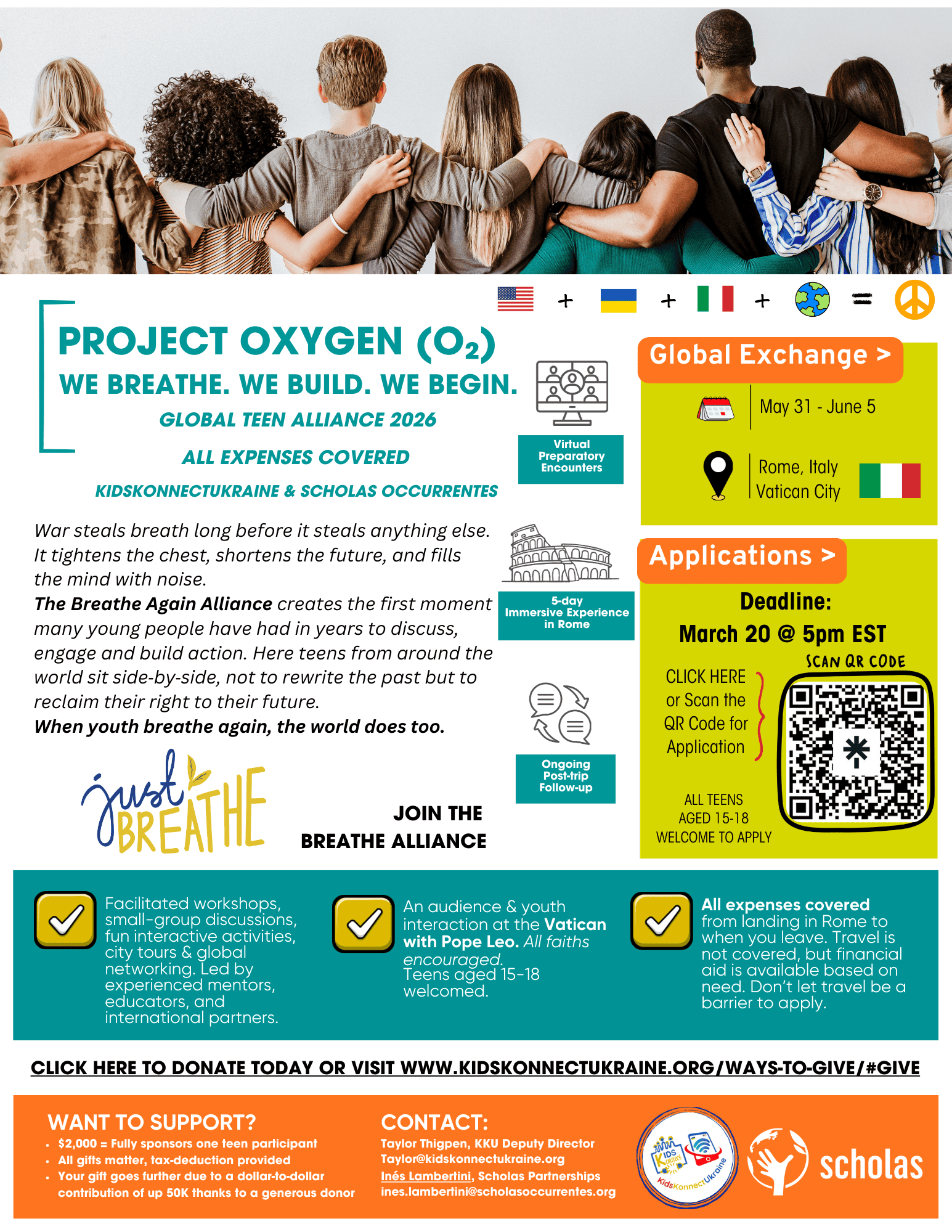 Project Oxygen is bringing students together in Rome and Vatican City to build The Breathe Alliance — a global crew of young leaders impacted by conflict who want to turn real conversations into real action.