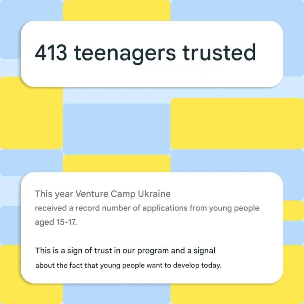 This year, we received 413 applications from 15-17-year-olds β and this is a strong one: young people are eager to learn, grow, and take their first steps in their own projects today.