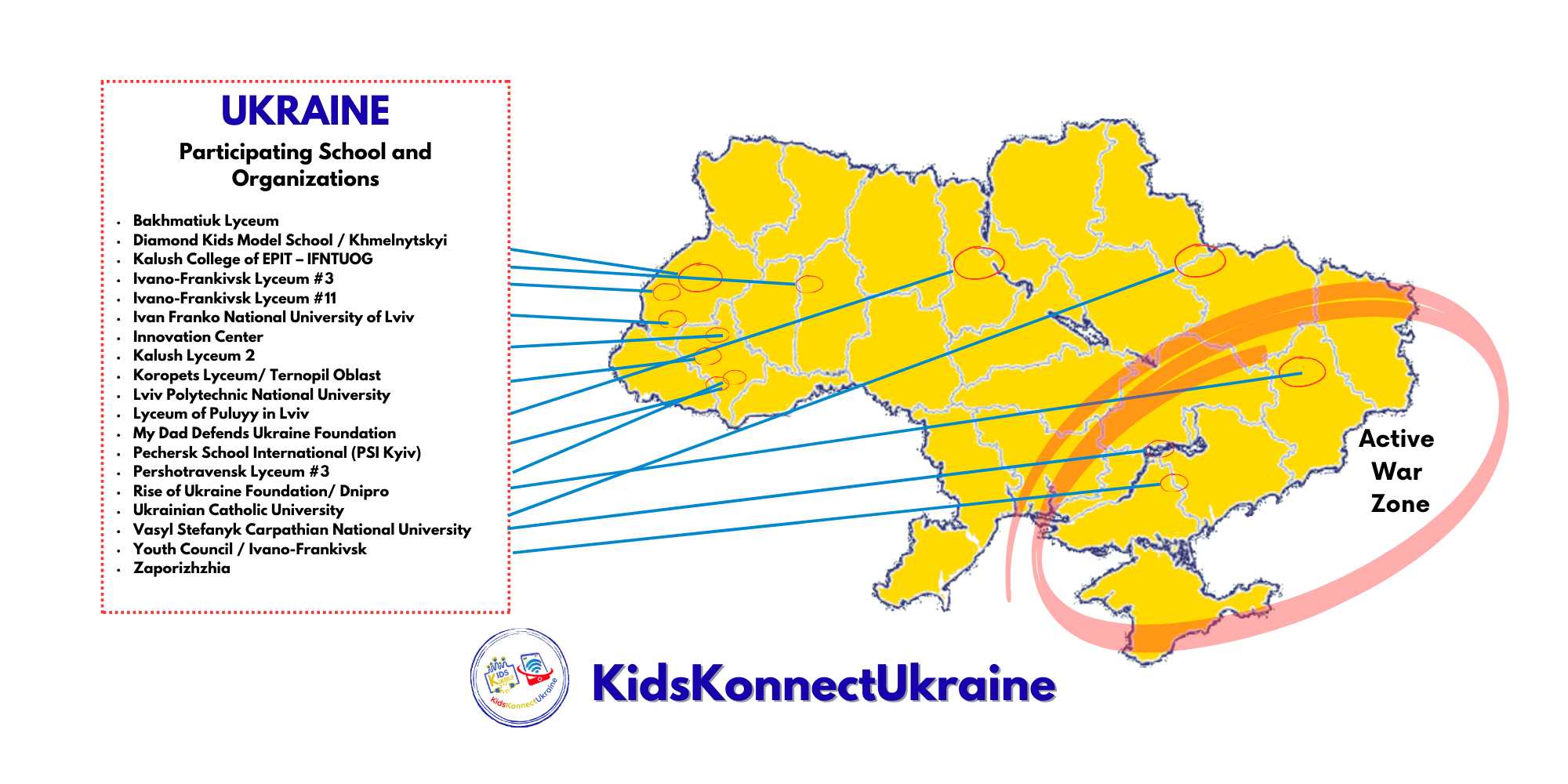 Kids Konnect Ukraine is uniting students, schools, and organizations across the world to support displaced Ukrainian children. Explore our Participation Map to see how communities everywhere are making a difference!